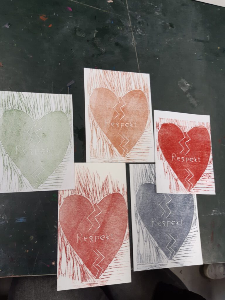 Während der vier Projekttage wurde das Thema aus unterschiedlichen Perspektiven beleuchtet und intensiv diskutiert. Im Anschluss entwickelten alle Teilnehmenden eine eigene visuelle Darstellung, in der sie ihre persönlichen Gedanken und Erkenntnisse zum Ausdruck brachten.